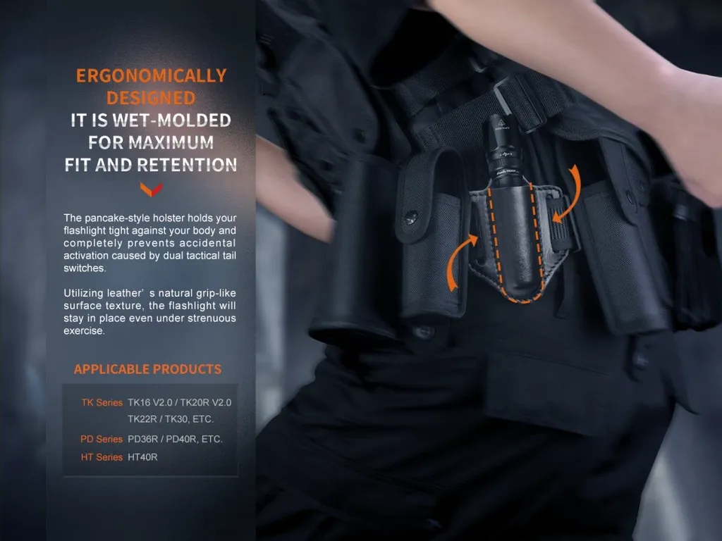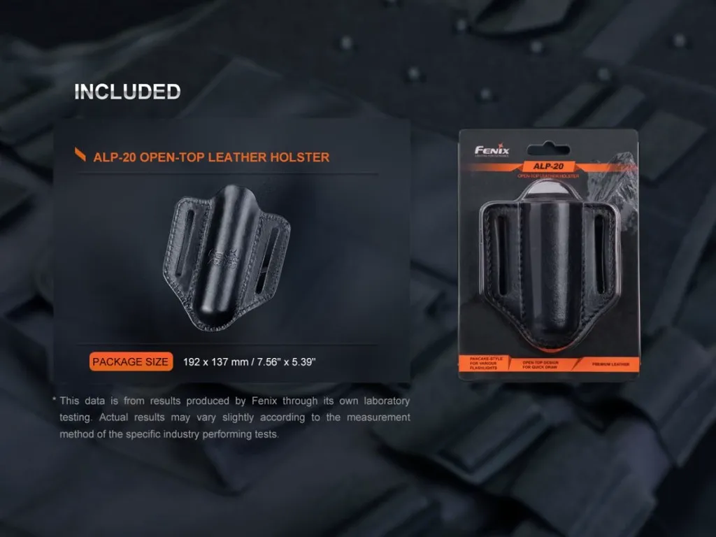 Fenix ALP-20 is a quick draw leather case for duty flashlight. The whole is made of quality full-grain cowhide. The flashlight will not loosen after being inserted; it is a close-fitting concealed flashlight cover that is very suitable for casual clothes. Wear firmly, the flashlight will not shake even when running and under strenuous exercise. Body and thigh squeeze of the holster will not trigger the switch, and it is excellent to prevent accidental touch. As a practical companion of duty flashlight, it will bring you a comfortable and high-efficient wearing experience.