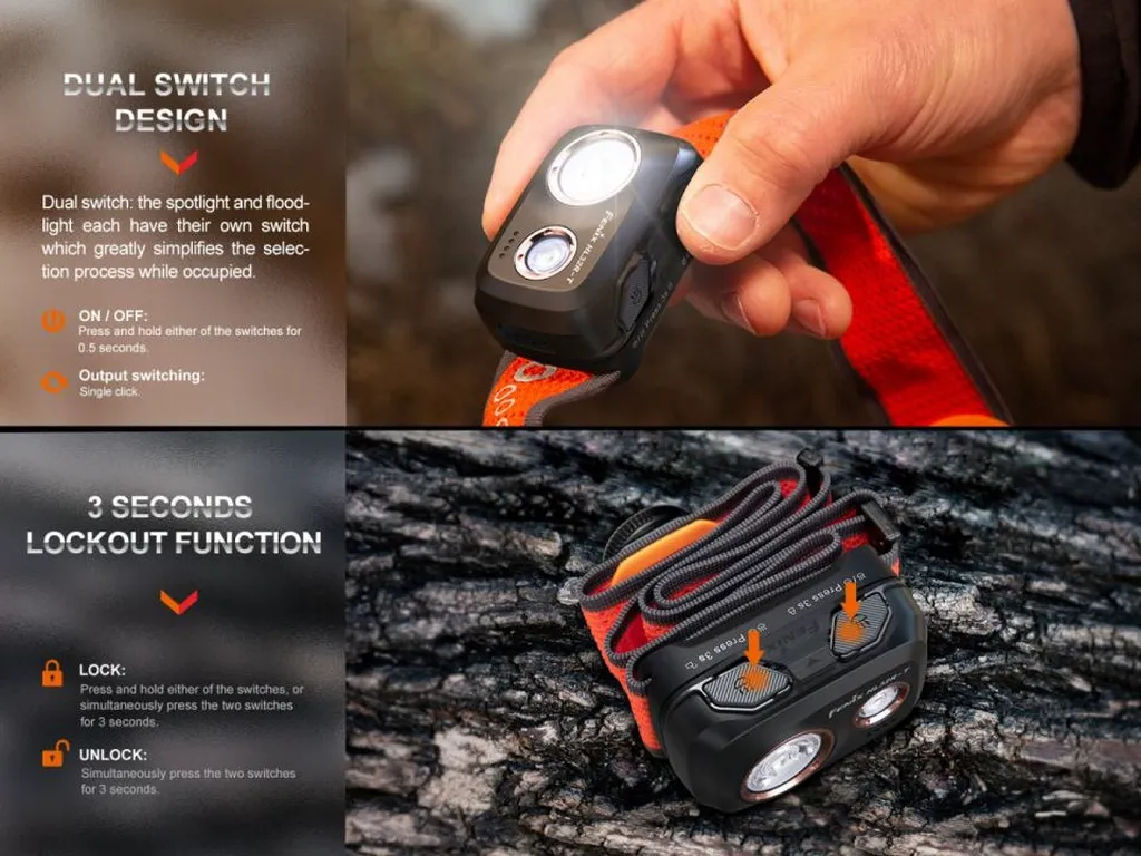 Discover the Fenix HL32R-T, a top-tier rechargeable headlamp perfect for trail running and outdoor enthusiasts in Canada. With a powerful 800 lumens output, this headlamp ensures clear visibility on night trails. The dual-beam design allows for separate spotlight and floodlight use, offering both long-range and close-range illumination. Its lightweight magnesium construction makes it ideal for long adventures like mountaineering or trekking. The Fenix HL32R-T is IP66-rated for water resistance and can withstand impacts up to 2 meters. Easily recharge with USB Type-C or use 3×AAA batteries for backup. Elevate your outdoor experience with this versatile Fenix headlamp.