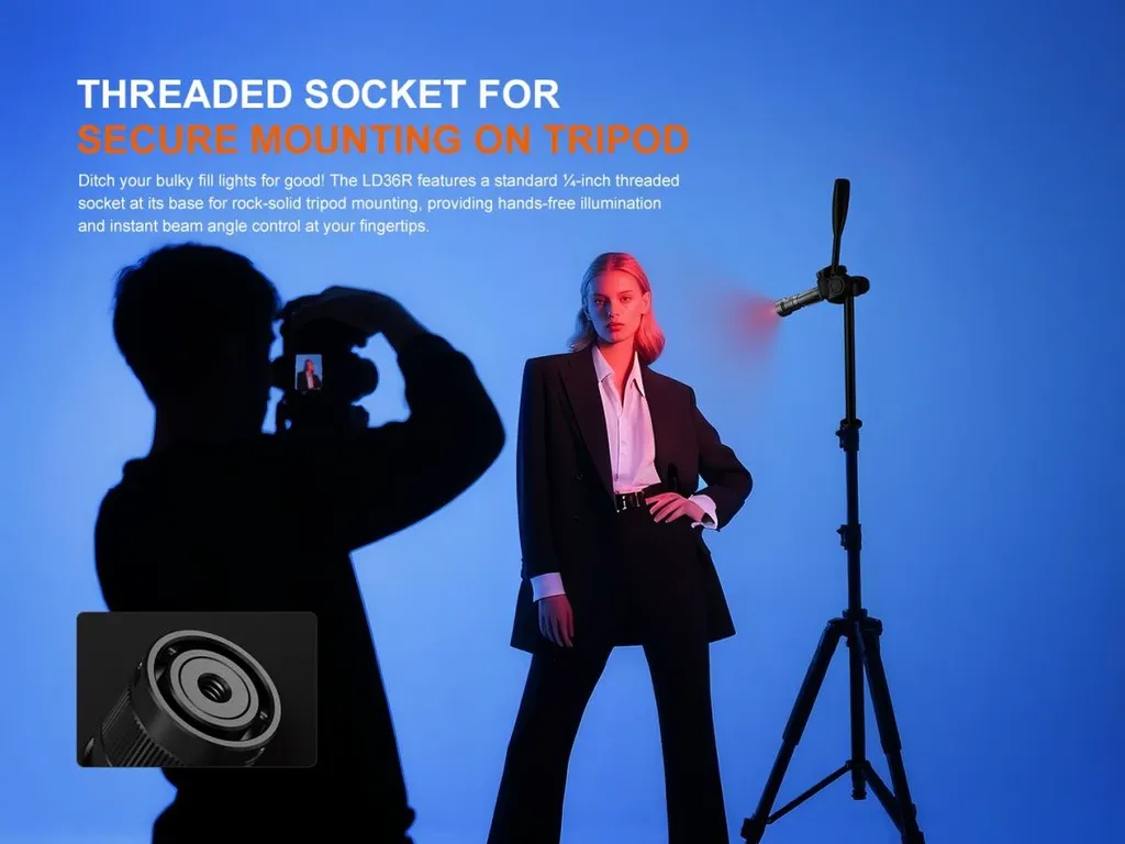 • ¼ inch threaded socket at the tail allows the light to be securely mounted on a tripod for hands-free illumination.